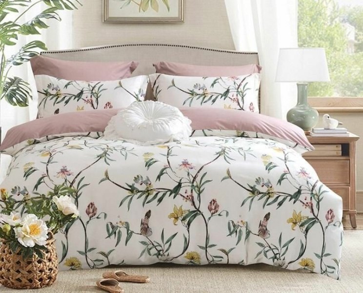 А лицевая сторона пододеяльника и две другие наволочки сделаны из жатого шелка. Постельное белье упаковано в фирменную белую подарочную коробку.