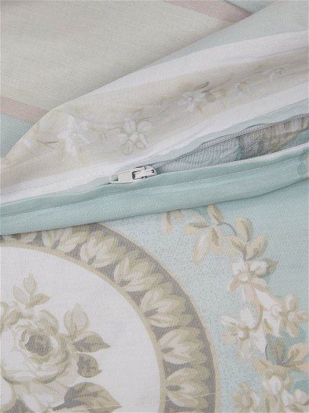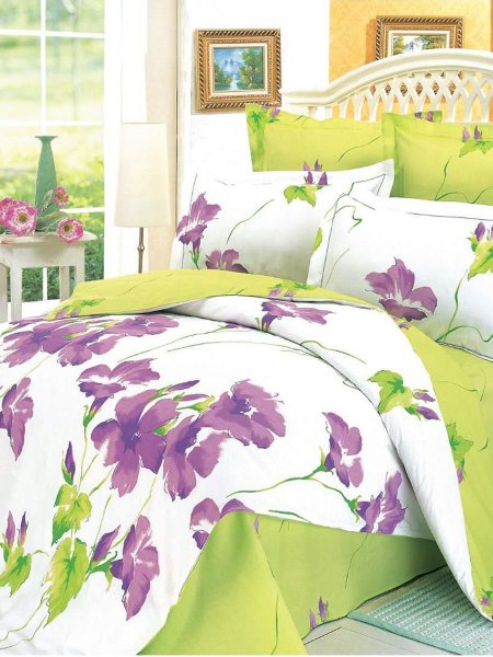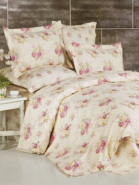 Постельное белье комбинированное: внутренняя сторона пододеяльника, простыня и две наволочки выполнены из сатина.