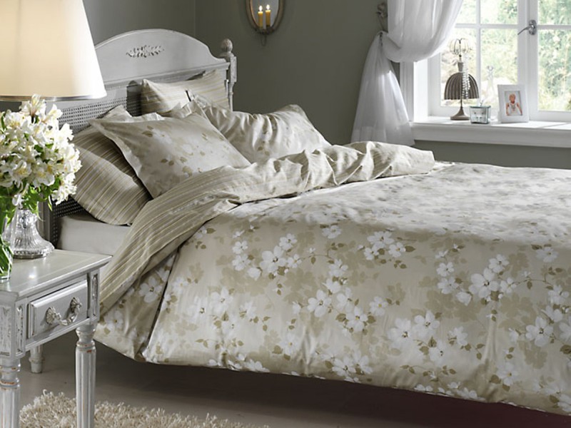 Постельное белье комбинированное: внутренняя сторона пододеяльника, простыня и две наволочки выполнены из сатина.