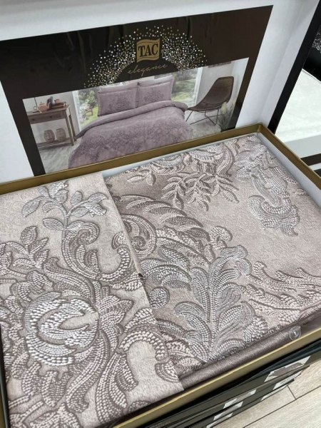 А лицевая сторона пододеяльника и две другие наволочки сделаны из жатого шелка. Постельное белье упаковано в фирменную белую подарочную коробку.