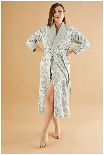 Халат женский длинный с жаккардовым рисунком Ткань:бамбук, хлопок Производитель: Турция