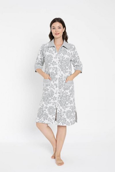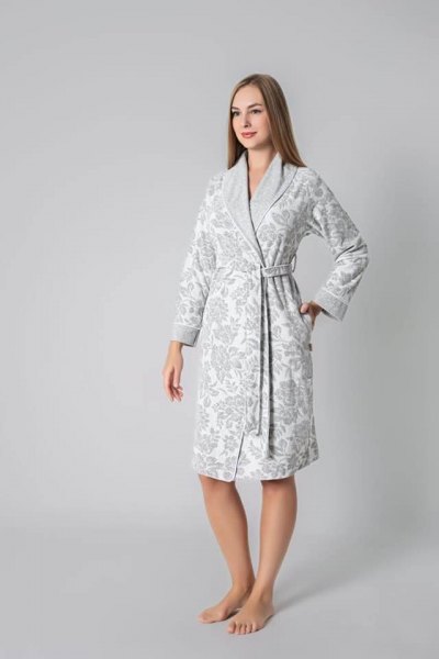 Халат женский средняя длина с жаккардовым рисунком, на замке Ткань: бамбук, хлопок Производитель: Турция