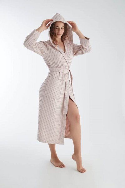 Женский халат длинный вафельнный с капюшоном Ткань: хлопок Производитель: Турция
