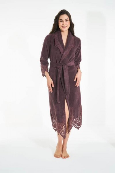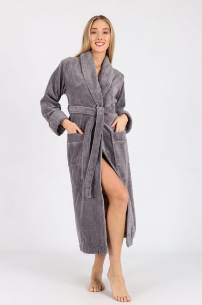 Халат женский длинный с воротником Ткань: велюр-махра, состав- бамбук, хлопок Производитель: Турция