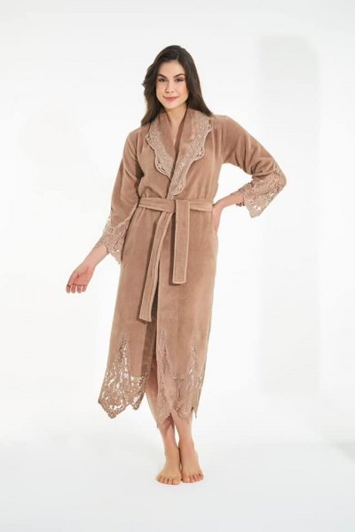 Халат женский длинный с воротником Ткань: велюр-махра, состав- бамбук, хлопок Производитель: Турция