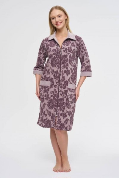 Халат женский средняя длина с жаккардовым рисунком, на замке Ткань: бамбук, хлопок Производитель: Турция