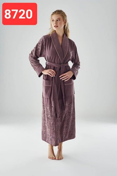 Халат женский длинный с воротником Ткань: махра-велюр, состав- бамбук, хлопок. Производитель: Турция