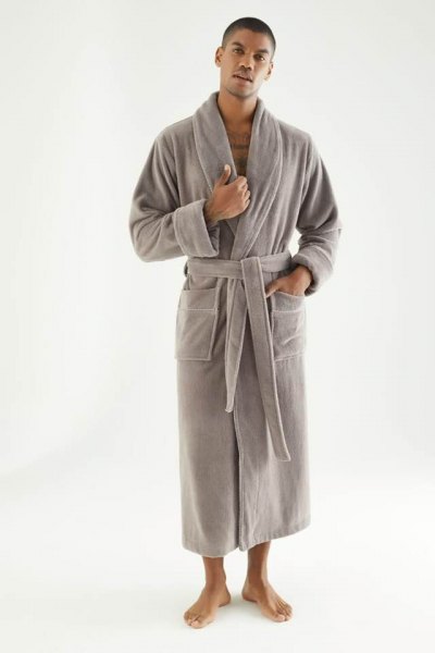 Мужской халат длинный с воротником Ткань: велюр-махра, состав- бамбук, хлопок Производитель: Турция